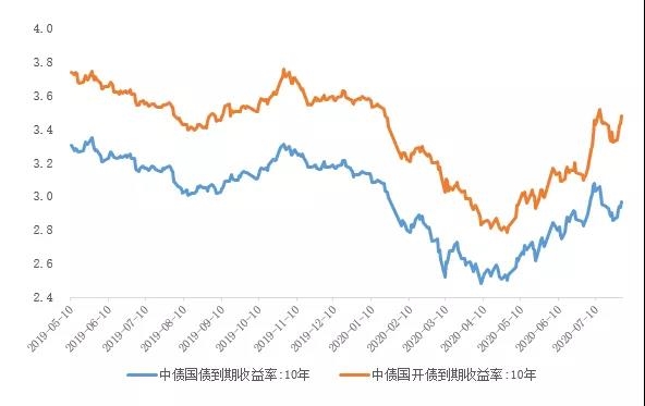 近一年國債和國開債(10Y)收益率走勢