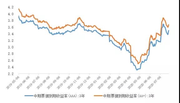 近一年中票(AAA3Y和AA+3Y)收益率走勢