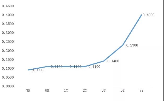 美國國債收益率曲線(%)