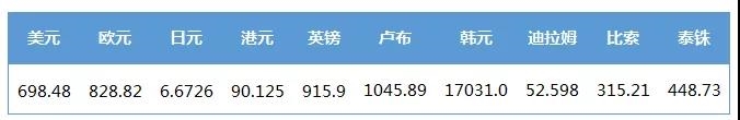 人民幣匯率中間價列表(2020-7-31)