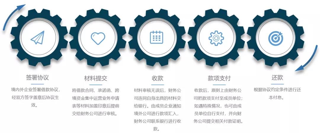 對(duì)應(yīng)外債引入業(yè)務(wù),即通過跨境資金池,財(cái)務(wù)公司可以為成員單位將境外池內(nèi)其他企業(yè)的多幣種外債引入,并根據(jù)借款合同的內(nèi)容協(xié)助成員單位進(jìn)行付款。